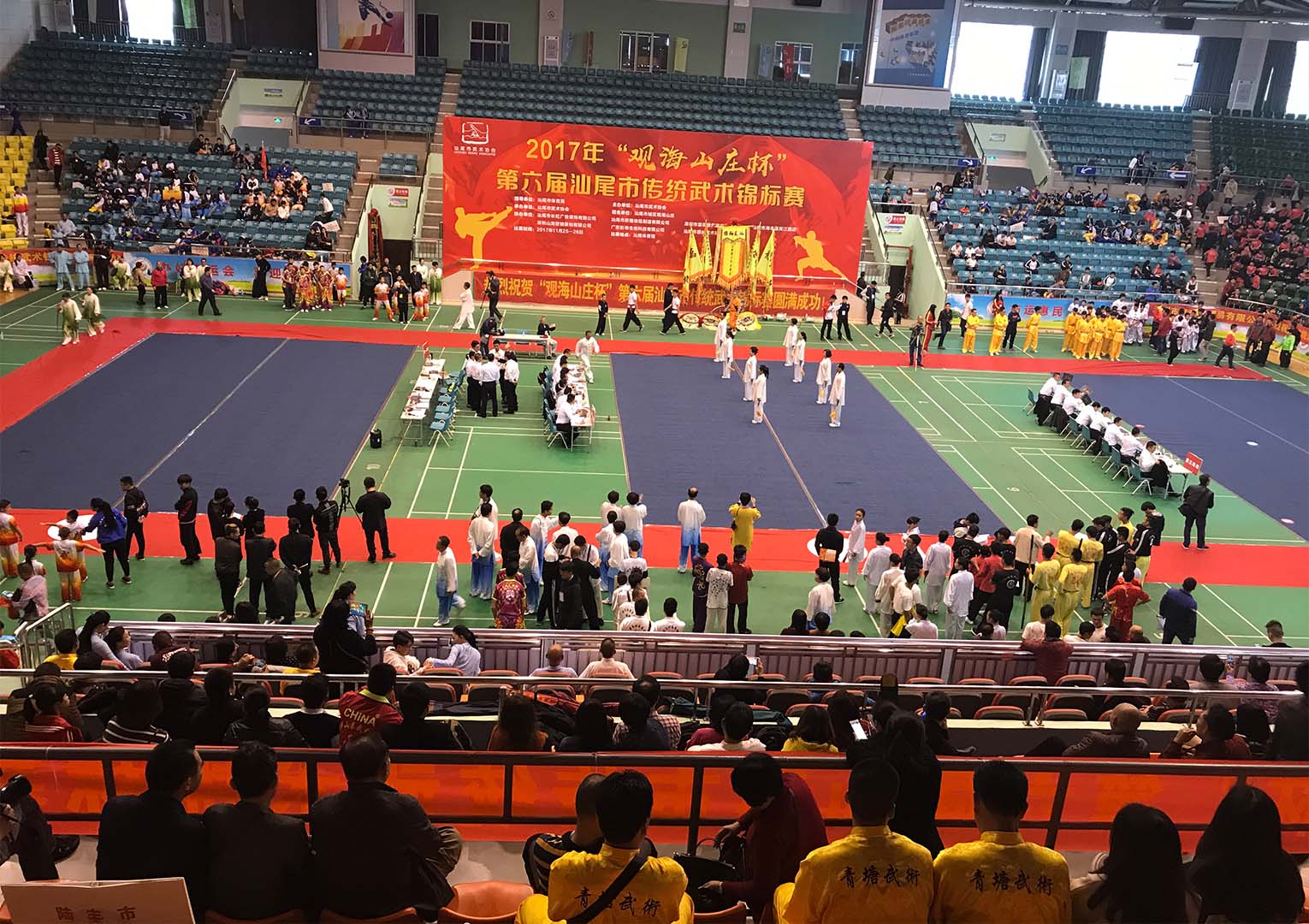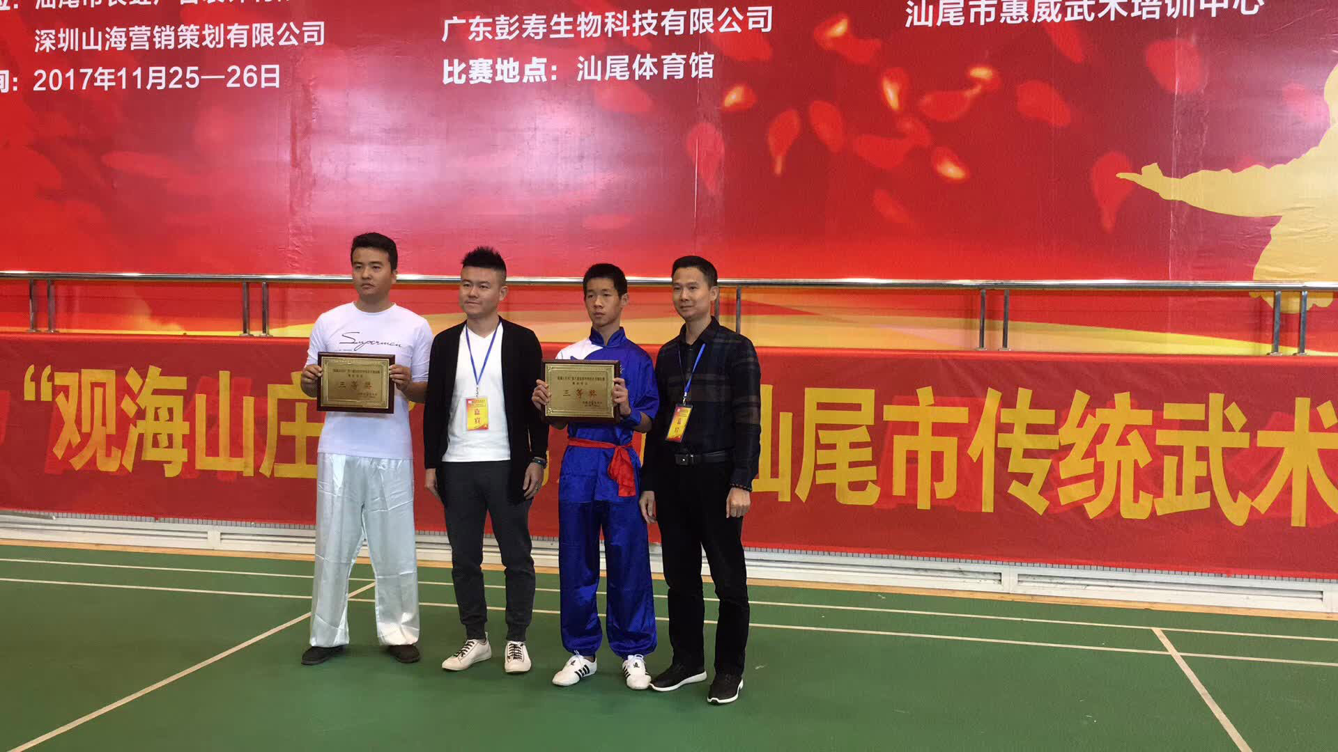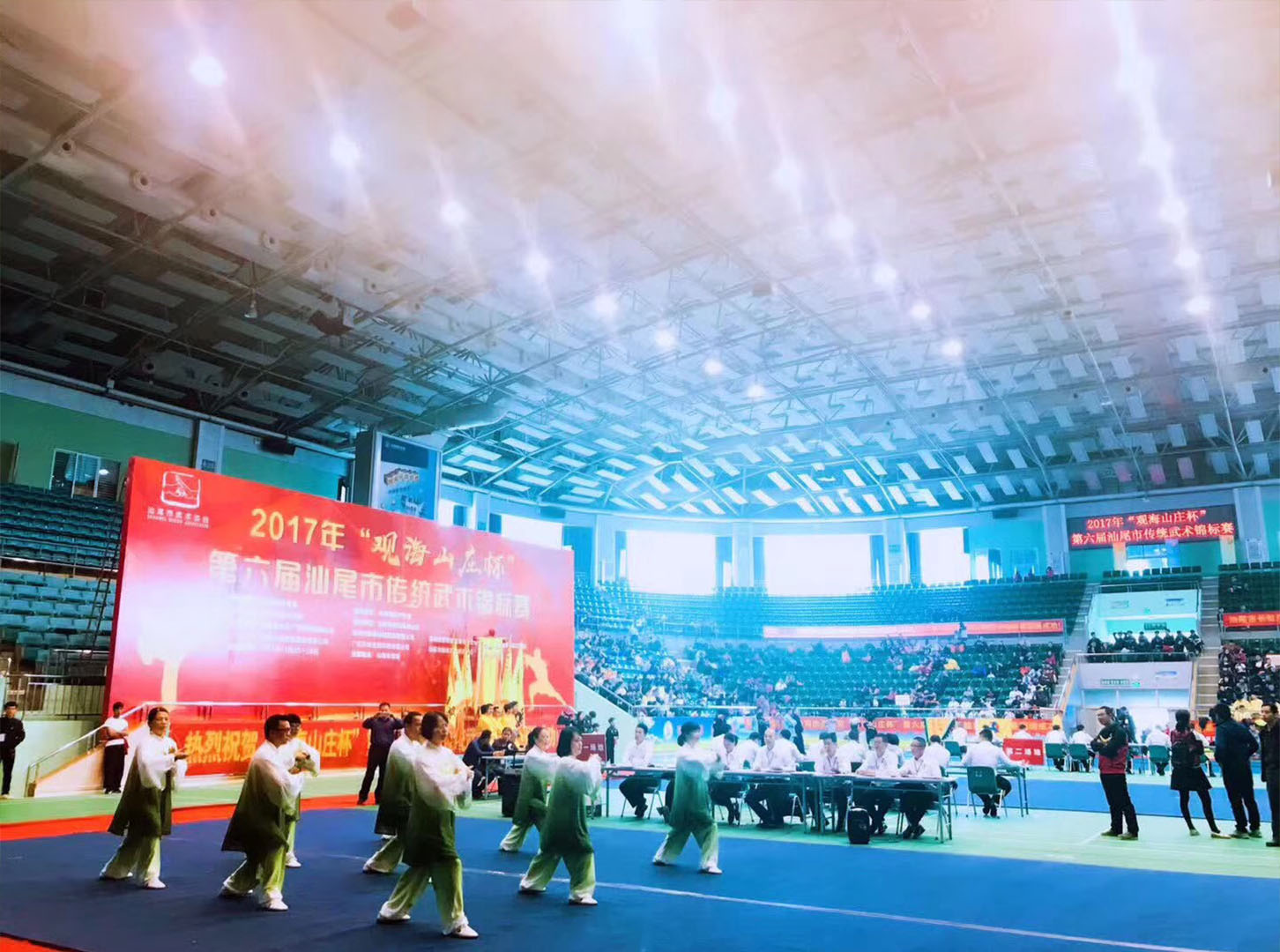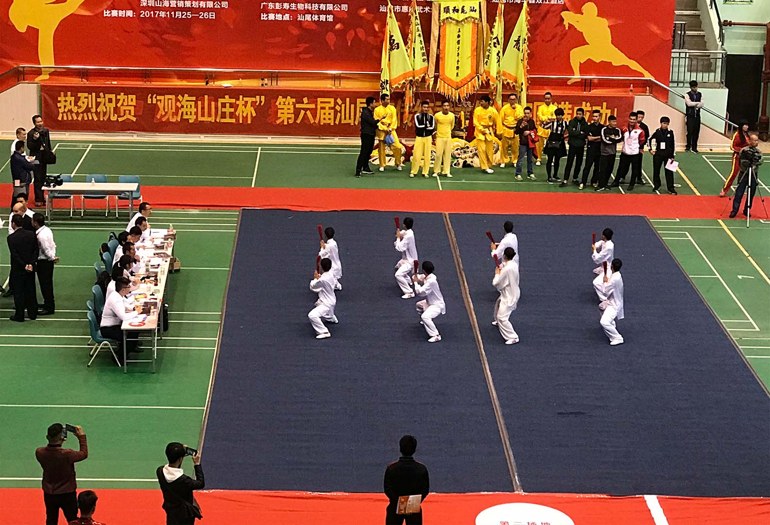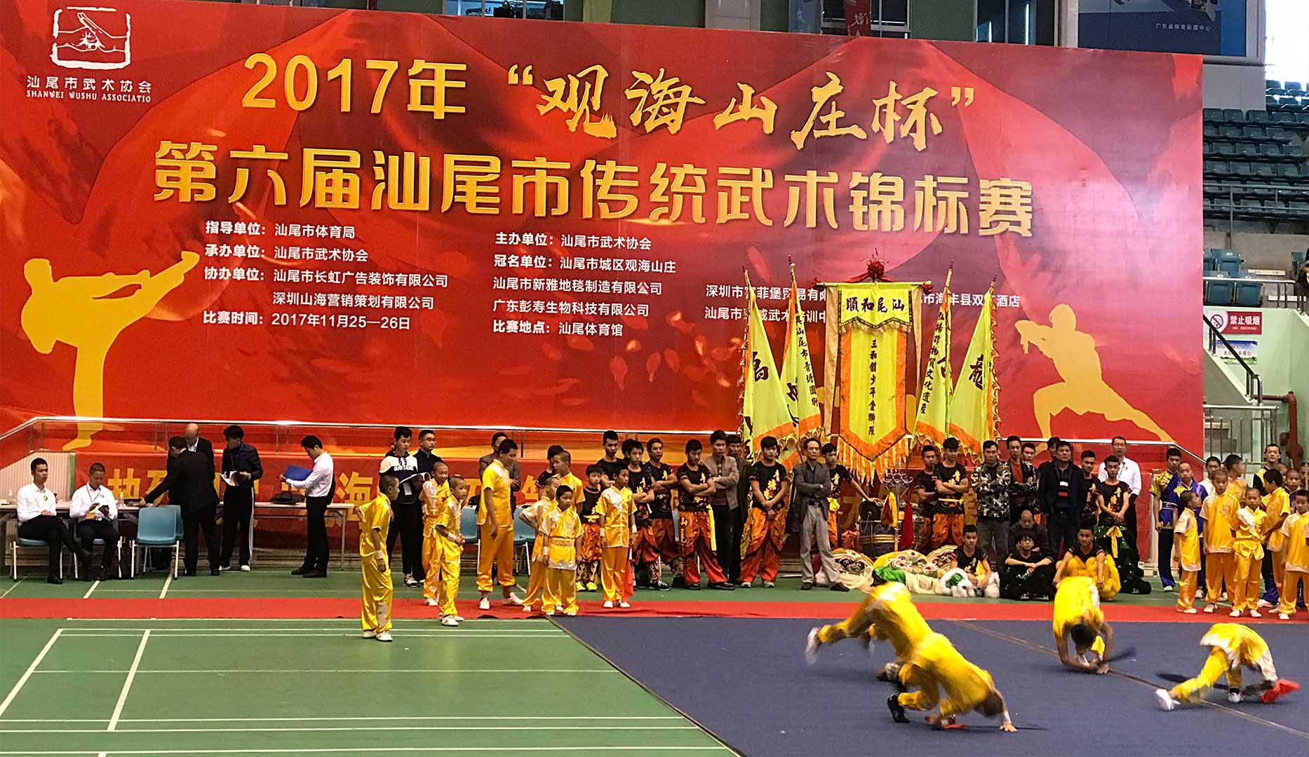 11月25日-26日,由汕尾市體育局指導(dǎo)、汕尾市武術(shù)協(xié)會主辦、廣東彭壽生物科技有限公司等協(xié)辦的“觀海山莊杯”第六屆汕尾市傳統(tǒng)武術(shù)錦標(biāo)賽在汕尾體育館舉行。據(jù)悉,今年參賽人數(shù)創(chuàng)歷屆新高,共有43支代表隊687名運(yùn)動員參賽,年齡最小8歲、最大73歲。