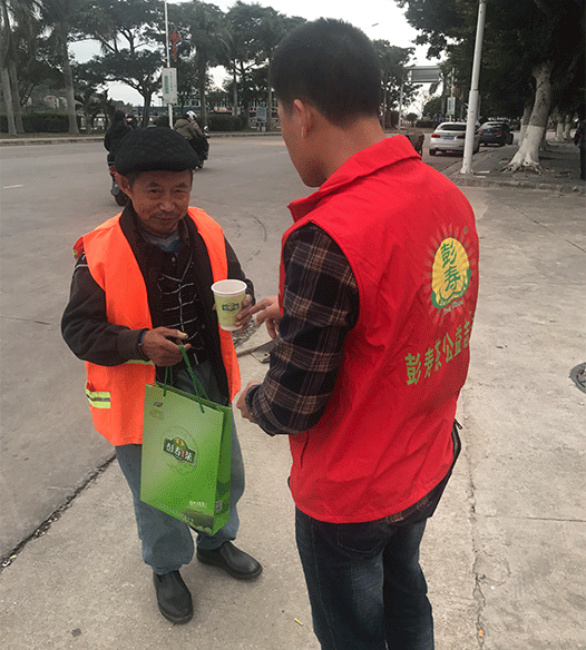 1月9日至10日,連續(xù)兩天,廣東彭壽生物科技有限公司總經(jīng)理馬宏樓帶領(lǐng)員工冒著寒風(fēng)冷雨,自發(fā)走上街頭慰問環(huán)衛(wèi)工人,為堅(jiān)守一線的環(huán)衛(wèi)工人送去熱騰騰的彭壽茶和溫暖的問候。