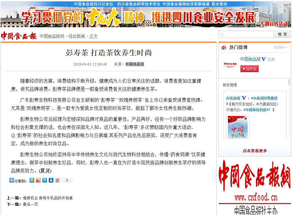 中國食品報(bào)報(bào)道:彭壽茶 打造茶飲養(yǎng)生時(shí)尚