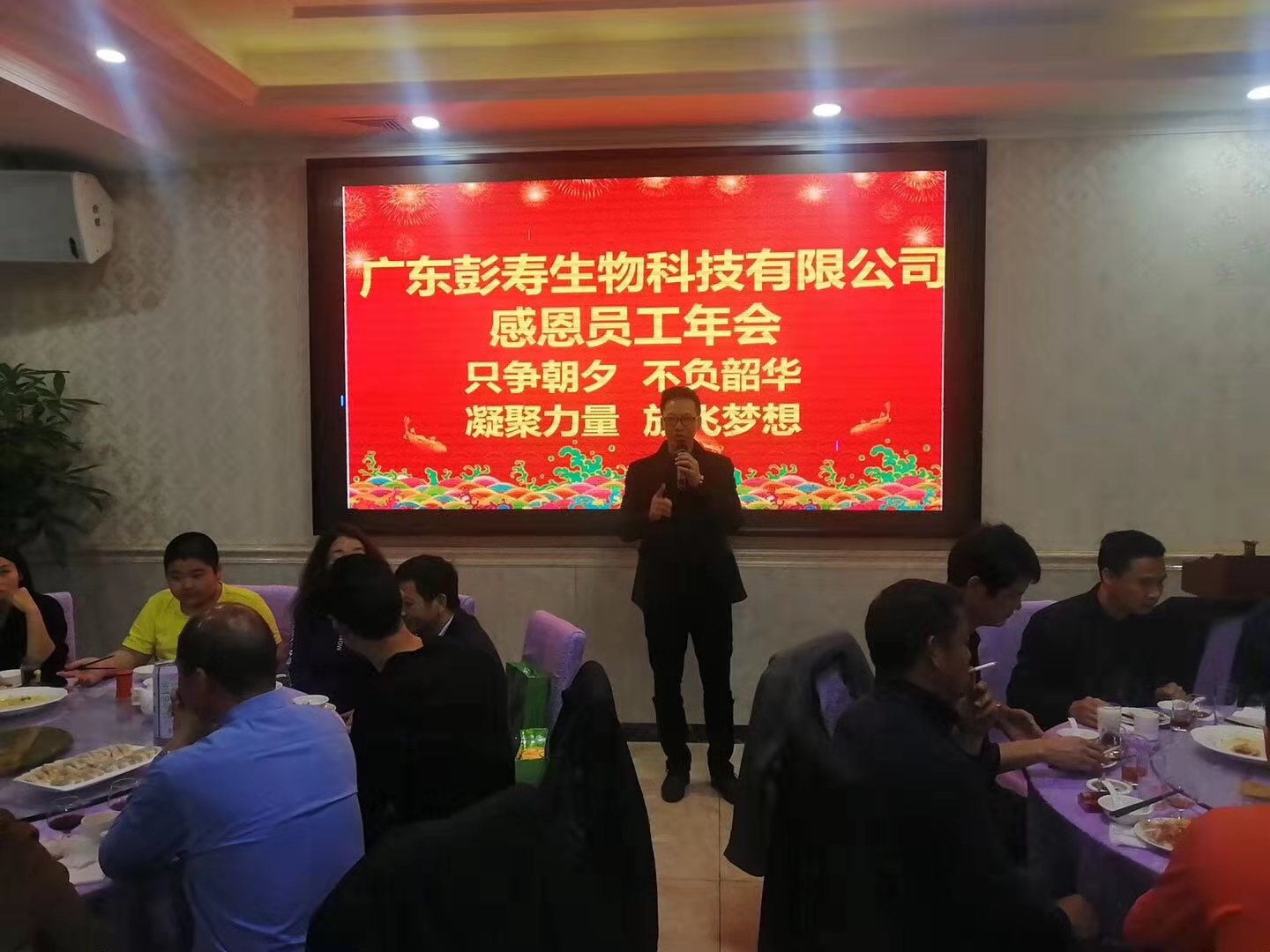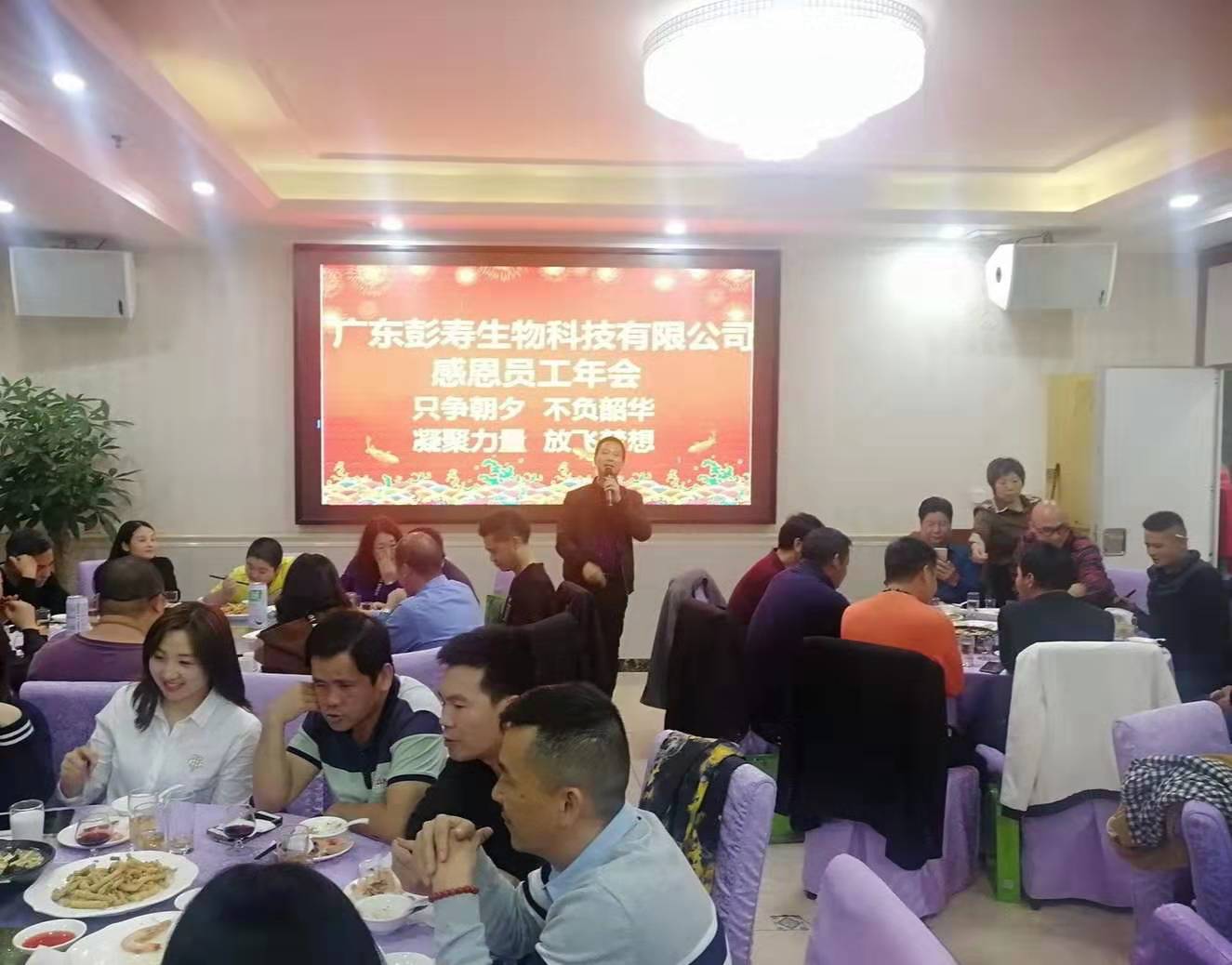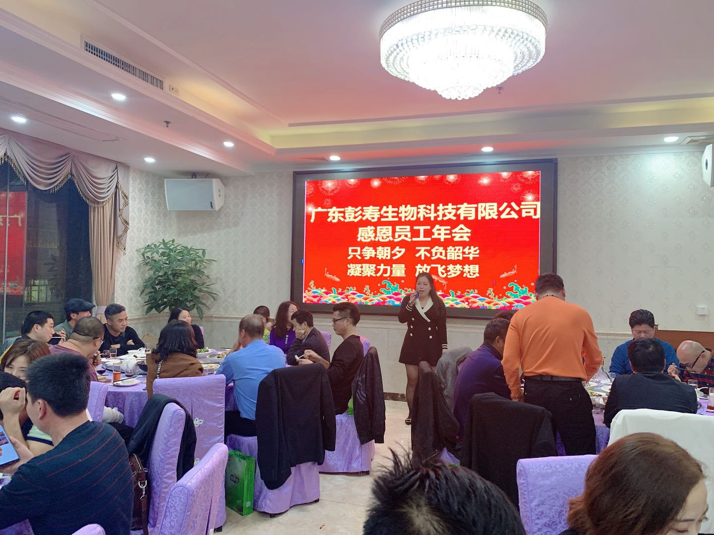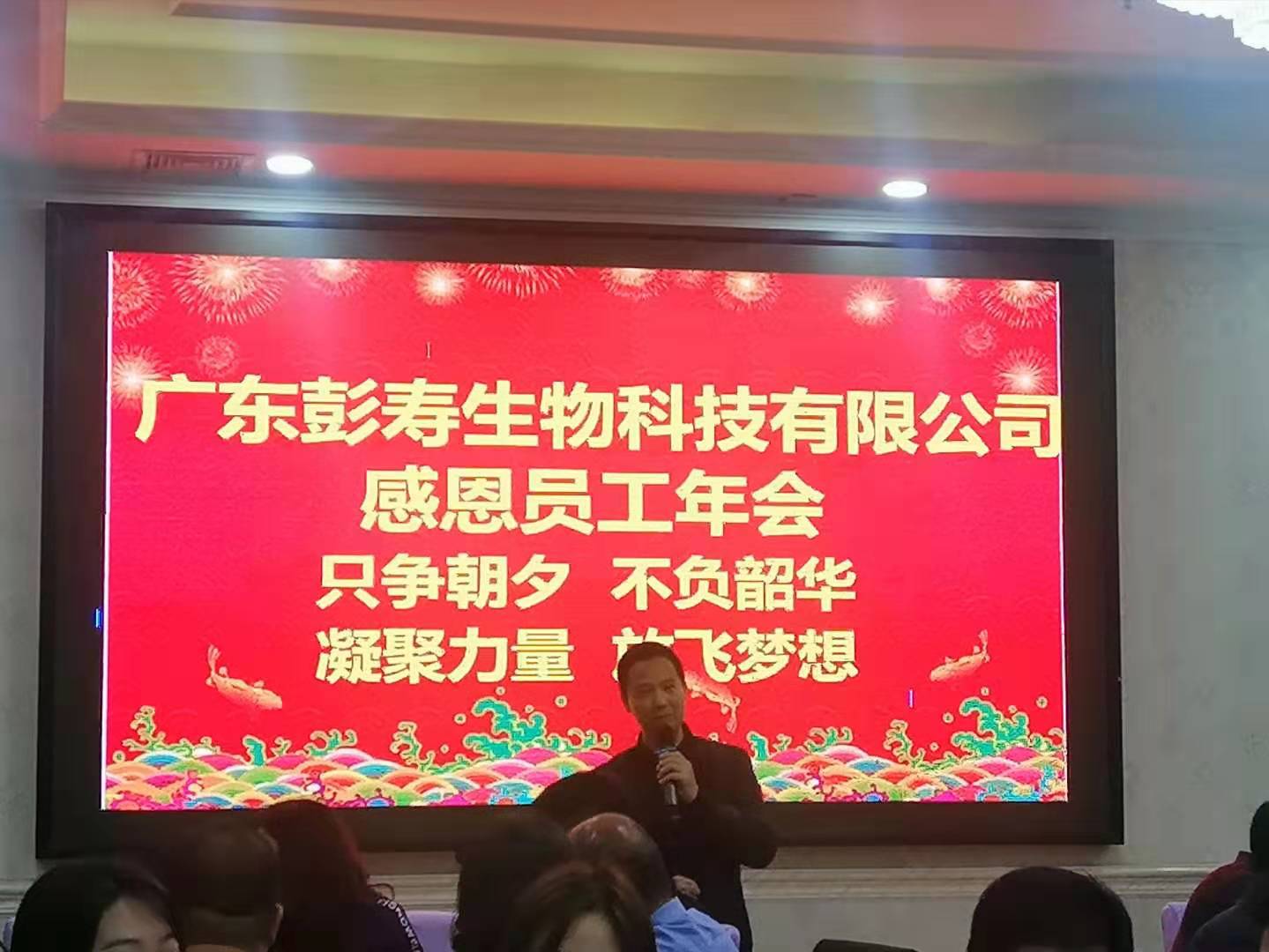 2020年1月9日,廣東彭壽生物科技有限公司(簡(jiǎn)稱(chēng)廣東彭壽公司)隆重舉行主題為“一路同行 感謝有你”的2020年感恩員工新春年會(huì)。公司總經(jīng)理馬宏樓攜公司管理層與嘉賓、員工近100人歡聚一堂,總結(jié)過(guò)去,展望未來(lái),共迎新春。