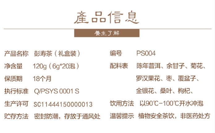 您現(xiàn)在的位置:首頁 >> 產(chǎn)品中心 >> 彭壽養(yǎng)生茶系列 >> 彭壽茶ps004