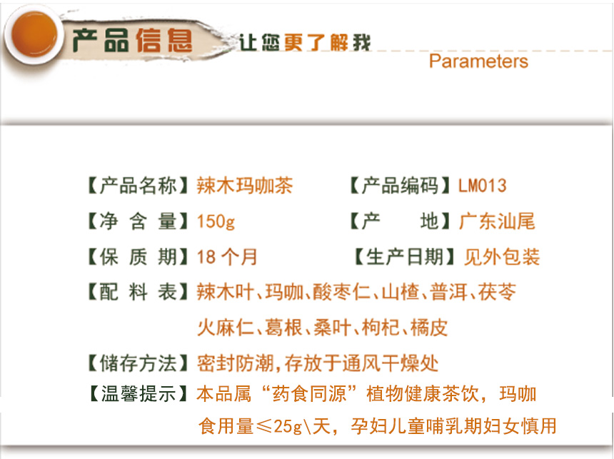 您現(xiàn)在的位置:首頁 >> 產(chǎn)品中心 >> 辣木瑪咖茶新品系列 >> 辣木瑪咖茶LM013