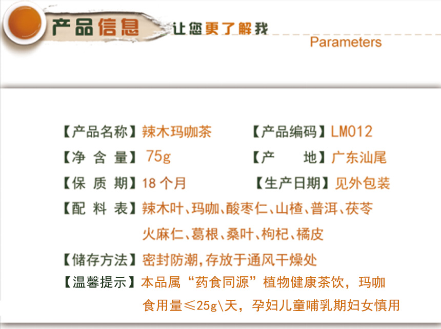 您現(xiàn)在的位置:首頁(yè) >> 產(chǎn)品中心 >> 辣木瑪咖茶新品系列 >> 辣木瑪咖茶LM012